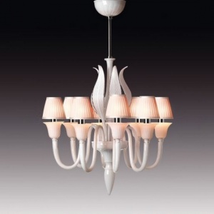 1/6601/107/2/8 8 lights chandelier Glass colour: milky white submerged into colourless crystal ¶(code 107)Lampshades: one kit of shades in plissé silk – white colour Frame: shiny chrome