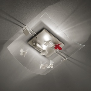 Каталог / Световое оборудование / Ferroluce / P1245 PL, col. Alba , met. silver leaf, transparent glass, burtterflies - white glossy ceramic