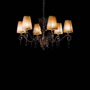 1630 CH6 AV lampadario 6 luci + paralumini conici + pendenti swar ski con goccia viola