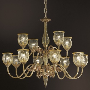 227/8+4 -008 ANTIQUE BRASS CHANDELIER W/GLASS 12XMAX60W E14