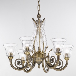 918/6 -008 ANTIQUE BRASS CHAND. W/CLEAR CR. 8xMAX60WE14