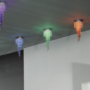 KIOCCIA/LUNGA SW Chrome or gold plated recessed, celling light and suspension. Coloured Strass Swarovski crystal pendants.