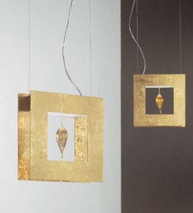KLOK/S1 SQ Gold leaf decorated metal frame, gold leaf hand made glass drops