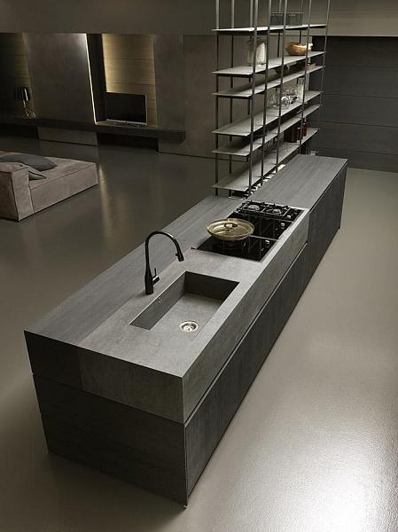 Необычное расположение функциональных элементов этой кухни от итальянского производителя Modulnova создает оригинальные визуальные эффекты. Благодаря сочетанию керлита, алюминия и стекла кухонные поверхности невероятно устойчивы к износу, при этом остаются легкими и экологически чистыми. Вторичная переработка всех элементов Blade абсолютно безопасна для окружающей среды.
