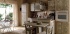 Болотно-зеленая модель Crete Senesi с зернистым фактурным эффектом "стены" и столешницей из матового травертина.