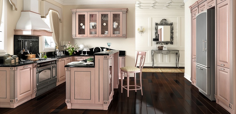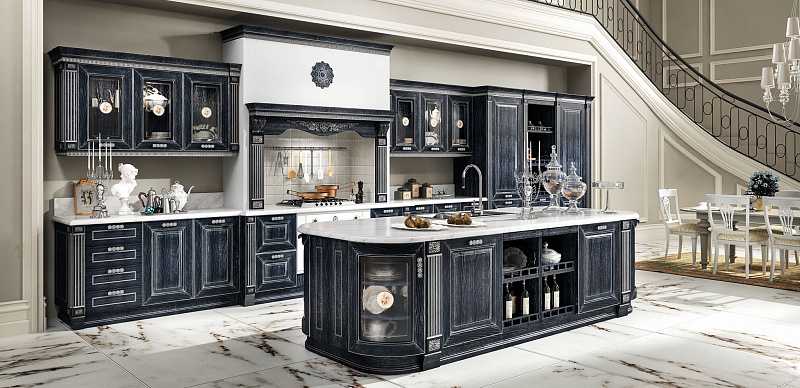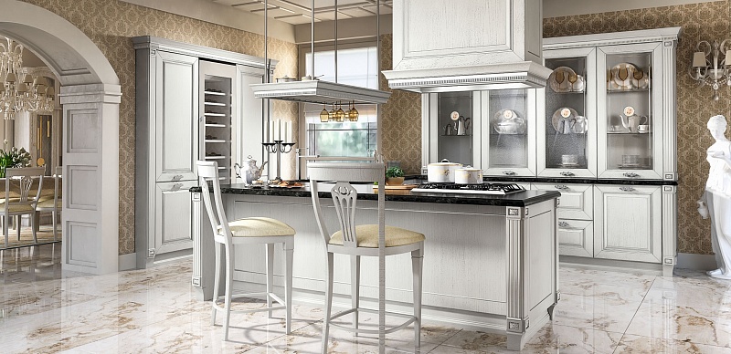 IMPERIAL - элегантная модель классического дизайна, утонченность которой подчеркнуты золотистой и серебристой отделкой створок и декоров. В этой модели отлично сочетаются история и технология, демонстрируя все самое лучшее дизайна Made in Italy. Декоры в неоклассическом стиле присутствуют во всех модульных элементах кухонного гарнитура и придают ему классический стиль при всех удобствах современной жизни. Рама из массива ясеня и панель из МДФ, шпонированная массивом ясеня.