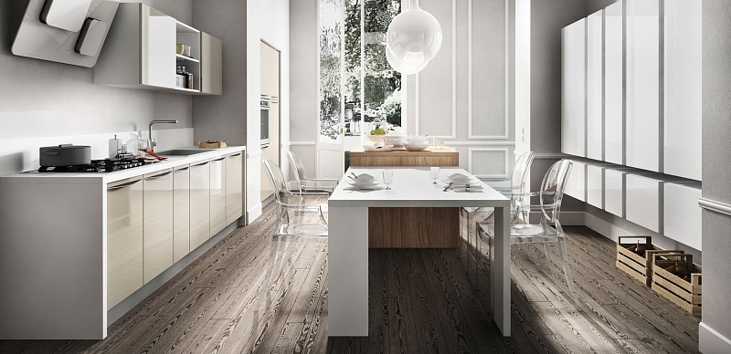 REFLEXA - это гарнитур с облицовкой из полированного глянцевого ламината пост-форминг в шести цветах: BIANCO (белый), BORDEAUX (бордовый), GEMMA (Жемчужина), GHIANDA (Желудь), TITANIO (Титан), CELESTINO (Селестино); горизонтальная окаймовка створок из профиля ПВХ цвета кухонного гарнитура. Яркий с точки зрения эстетико-композиционного решения, легкость форм. Шкафы и их окрашивание выполнены с использованием новых технологий, дающих отличные результаты.