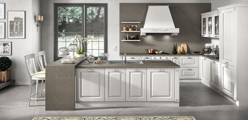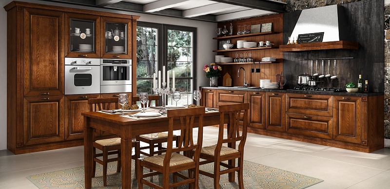 REGALE - модель чрезвычайно элегантный и классический дизайн подчеркивает все уточнения ее через драгоценную отделку. В этой модели отлично сочетаются история и технология, демонстрируя все самое лучшее дизайна Made in Italy. Regale - это серия, которая входит в Коллекцию Классических кухонных гартитуров и снабжена всеми современными удобствами, при этом отличается изысканнейшими фасадами в следующей цветовой гамме: Styldecape, Белый Regale, Дуб Regale, Opex Regale. Рама из массива ясеня и панель из МДФ, шпонированная массивом ясеня.