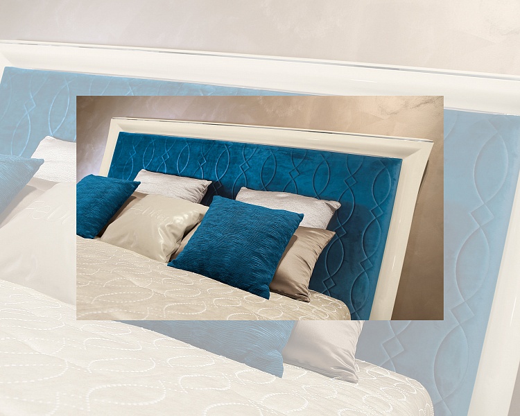 Двуспальная кровать с обитыми изголовьем и основанием. Обивка-кожа, ткань. Варианты отделки-цвет вишня, цвет орех, глянцевый лак, светлое дерево, с золотом, с серебром, крашеная, матовый лак. Структура-массив дерева.