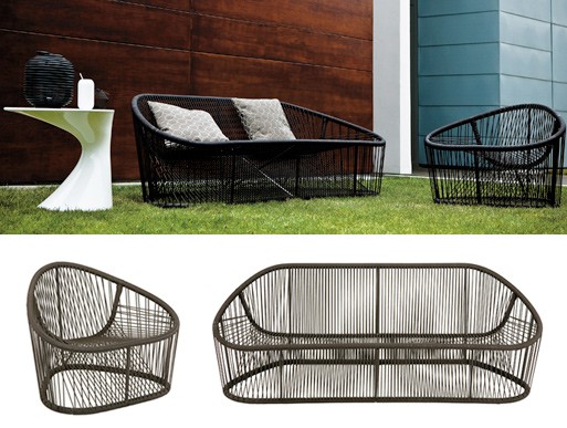 Дизайнер: Prospero Rasulo. Диван на каркасе из окрашенной стали. Плетение коричневого цвета выполнено из ПВХ-лент.На заказ возможно изготовление тонкого мата для сиденья с наполнителем из ППУ и дакрона DuPont. Модель может использоваться в помещении и на открытом воздухе.