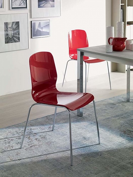 Стул со структурой из металла, сидение из поликарбоната.