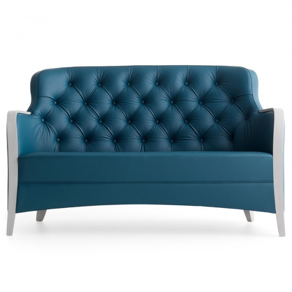 Диван, каркас из массива дерева. Передние спинки в обивке капитоне. Подлокотники деревянные, окрашенные.