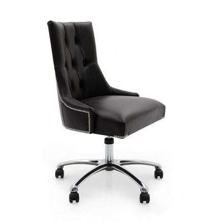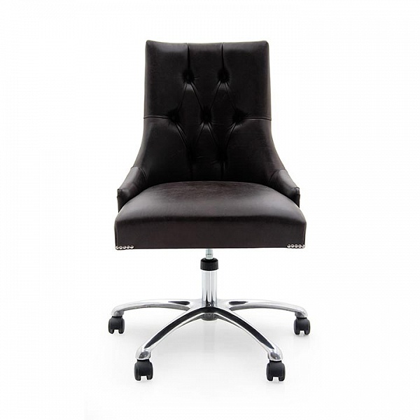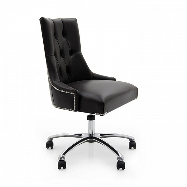 Элегантный офисный стул в современном стиле из древесины бука с выдержанными и квадратными контурами, полностью обитый кожей и каретной стяжкой на спинке. Набивка сидения выполнена из ремней, пружин и пористой резины.