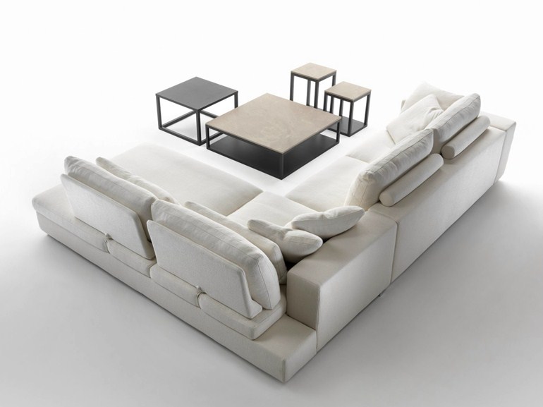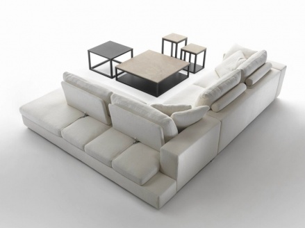 Для производства каркаса используется массив дерева и многослойная фанера в сочетании с перекрещивающимися эластичными ремнями. Наполнение из полиуретана, обернутого в белый бархат. Наполнение подушек спинки выполнено из материала Piumafib – специальной, не вызывающей аллергию смеси из натурального пуха и полиэфирных силиконовых волокон. Подушки сиденья: стеганые по отсекам, наполнение из натурального пуха с вставками из полиуретана.